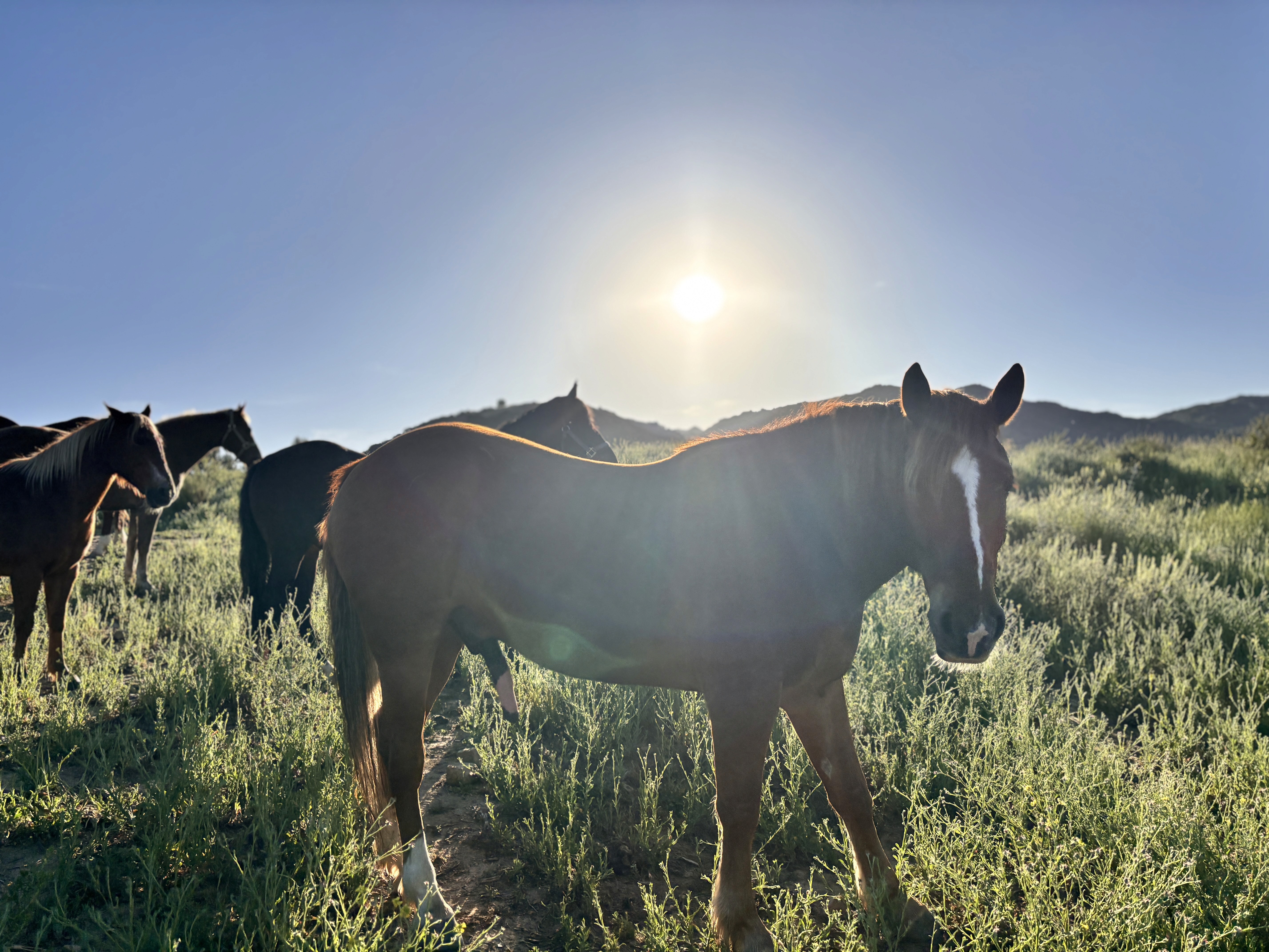 Working with these wild horses as our guides, their responses are pure. They are extraordinarily sensitive, and their nervous systems recognize authenticity. When you are in the presence of an animal that has not learned to perform, your own performance has nowhere to hide. The horses co-regulate the human nervous system and help deactivate stuck states of stress, fight, flight, and freeze, allowing people to release what they are holding in a safe, nonverbal way.